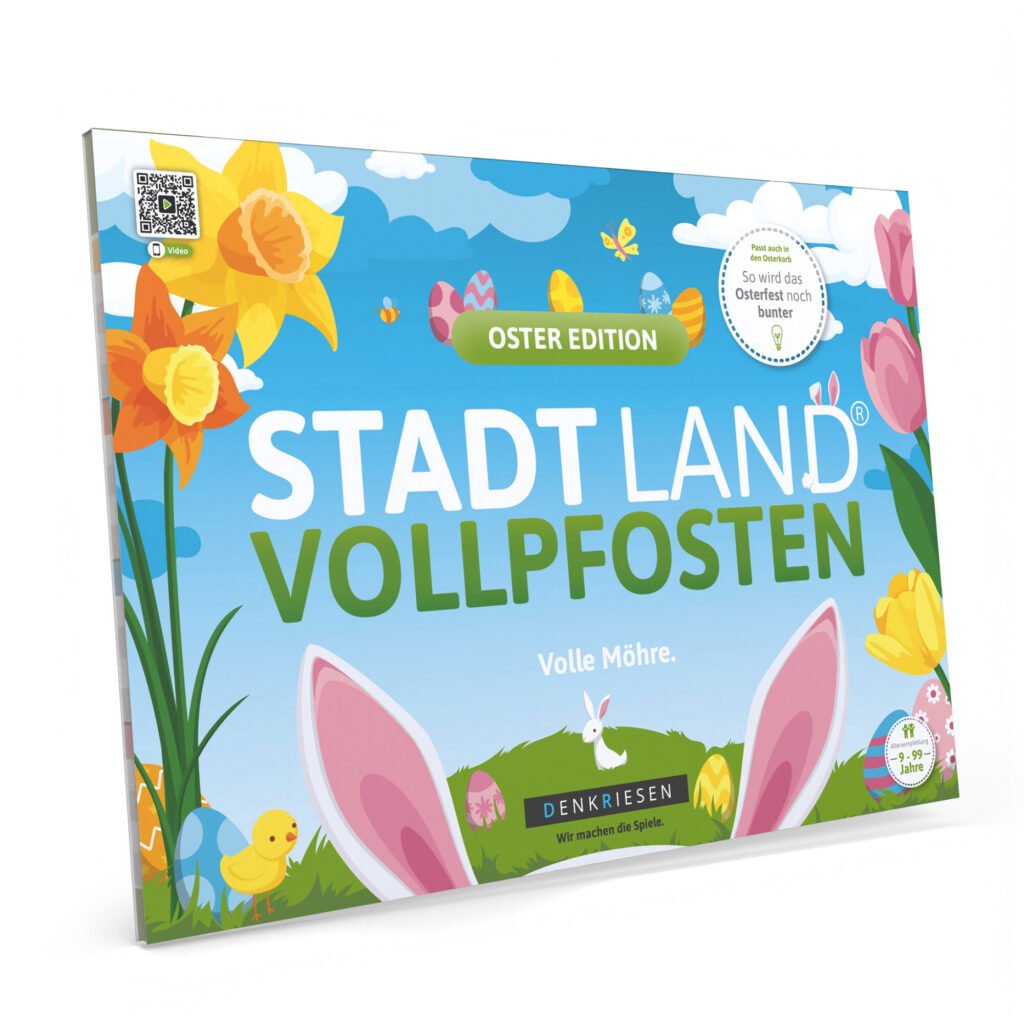 Stadt Land Vollpfosten® – Oster Edition, Denkriesen, 2-50 Spielerinnen und Spieler, 9-99 Jahren, orellfuessli.ch, Fr. 14.90